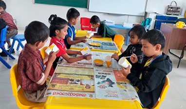 Little tykes in Greenfield Public School are also introduced to the Montessori method of learning to naturally and scientifically kindle their eager minds. The spacious and thoughtfully designed environment in the Montessori room is organised by subject, size and within reach of the children to stimulate their physical, social, emotional and cognitive development. A team of well-trained professionals introduce the children to various natural and aesthetic materials to learn concepts by working with them independently rather than through direct instructions.
